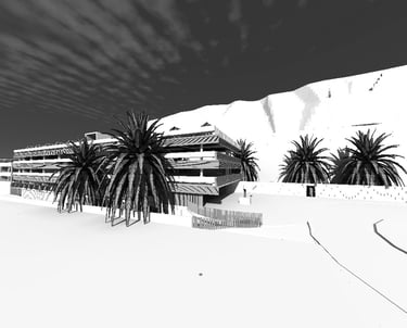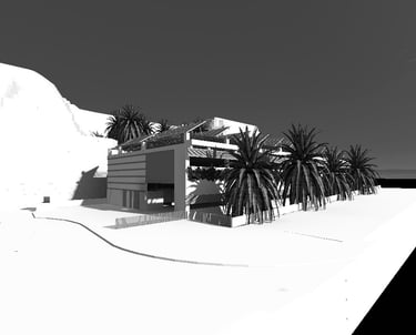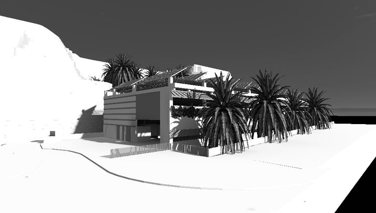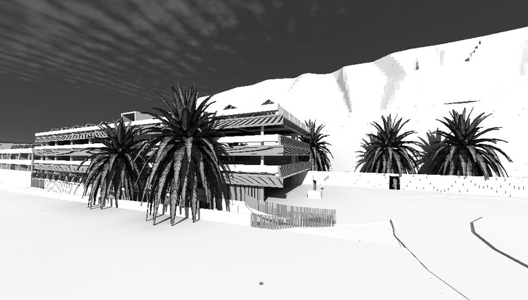 3. Envolvente exterior: Fachadas diseñadas para optimizar la iluminación, ventilación y el clima interior, con jardines verticales y sistemas que ajustan la climatización al abrir ventanas. La fachada sur, expuesta al sol y al viento alisio, tiene sistemas que controlan el confort térmico, mientras que la fachada al acantilado queda protegida naturalmente por la sombra.